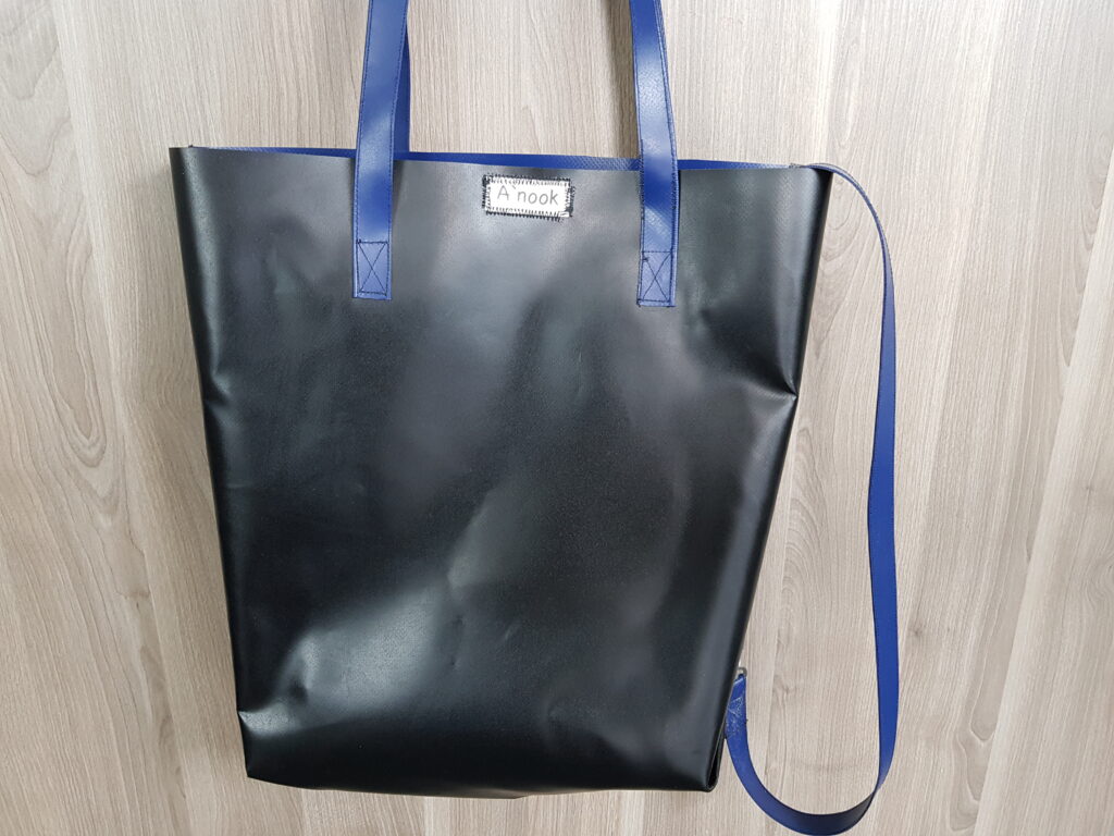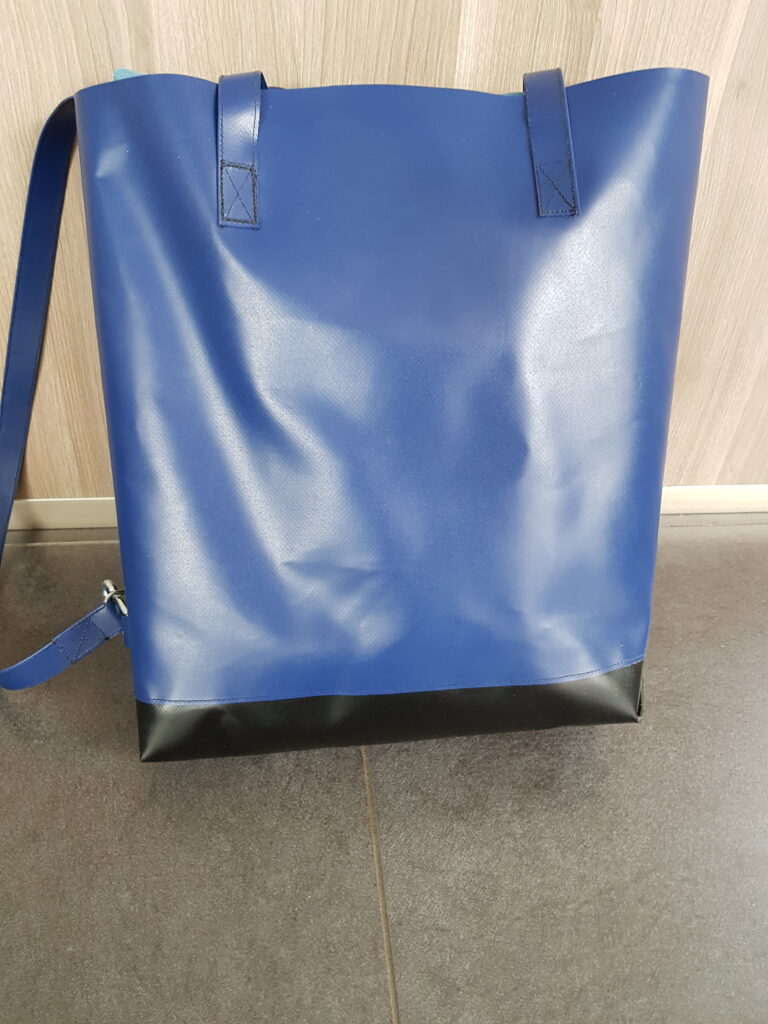 Réalisé en bâche en deux couleurs, bleu ou noir selon l’humeur.