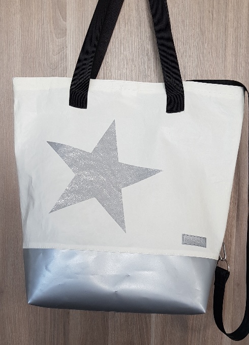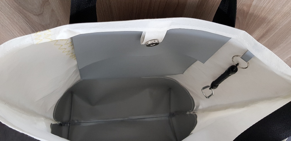 Réalisé en voile de bateaux recyclée. La base est en bâche.