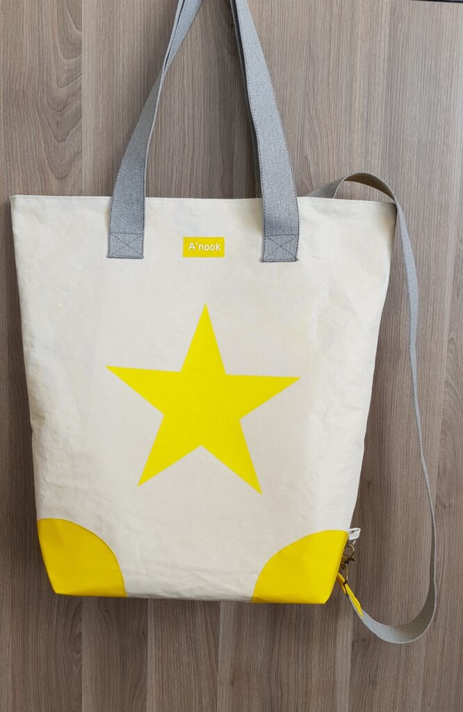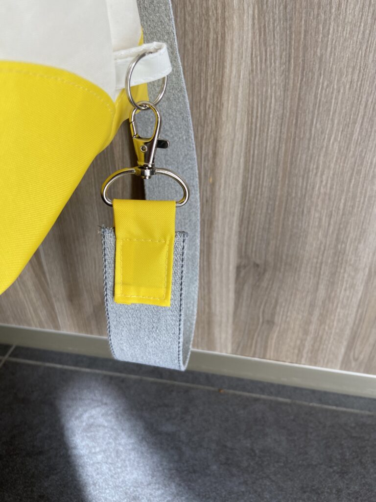 Réalisé en voile de bateaux recyclée et en tissu imperméable « Rivertex » pour l’intérieur. Il est étanche, léger et très solide. Il peut être porté à l’épaule ou au dos grâce à sa sangle amovible. Il a une poche intérieure zippée pour ranger le téléphone et un porte-clés pour trouver les clés tout de suite.